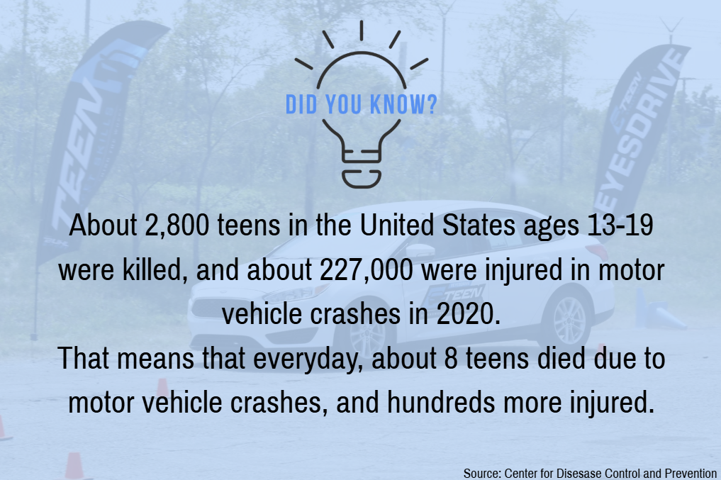Car crashes are one of the leading causes of death for teens age 16-19.